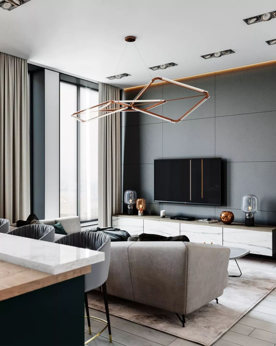 房屋裝修確定風(fēng)格十分重要,如今,房屋裝修的風(fēng)格多種多樣,選擇面也是十分寬廣,今天我們重點來欣賞100平米住宅現(xiàn)代風(fēng)格室內(nèi)設(shè)計效果圖。無論是質(zhì)地還是外觀都給人現(xiàn)代奢華的視覺效果,整體空間通過不同色調(diào)來營造不一樣的效果,空調(diào)和次臥以灰色調(diào)為主色調(diào)打造出高級精致感;廚房運用綠色點綴帶來視覺沖擊效果;衛(wèi)生間采用白色與金色,給人貴族般的視覺體驗。